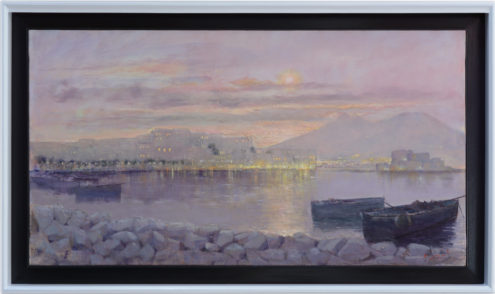 Il soggetto, che e' un classico della vedutistica napoletana, acquista con Criscuolo una veste nuova, originale. Non si e' mai vista una Napoli cosi' personale, rarefatta sognante aperta ad innumerevoli e diverse interpretazioni perche' altrettante sono le emozioni che suscita in chi la osserva |